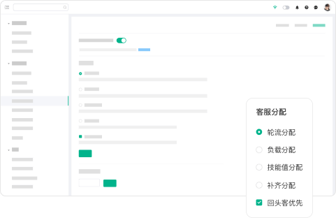 設置客戶的(de)IM會(huì)話(huà)在客服人(rén)員(yuán)之間(jiān)的(de)分(fēn)配策略,企業(yè)可(kě)根據自(zì)己的(de)管λ理(lǐ)要(yào)求進行(xíng)選用(yòng)。